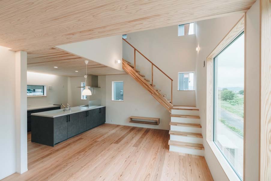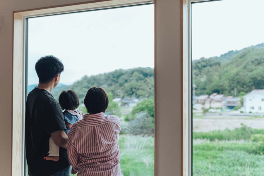 まだ家具を⼊れていないリビングには、これからソファーや家具が⼊って、家族の“暮らし”が彩られていく。それはまさに⼗⼈⼗⾊。仕事、趣味、好きな過ごし⽅、周辺の環境…。同じものは⼆つとないからこそ、それぞれの幸せの感じ⽅を形にしていくことが、家づくりです。「ここに暮らすことを、時間をかけていろんな⾓度からイメージし、考えてくださっていることがわかるんです。ここにソファーを置いて座ったときもそうだし、家族の姿が⾒える、家族を近くに感じられるなぁって思います」と奥様。
