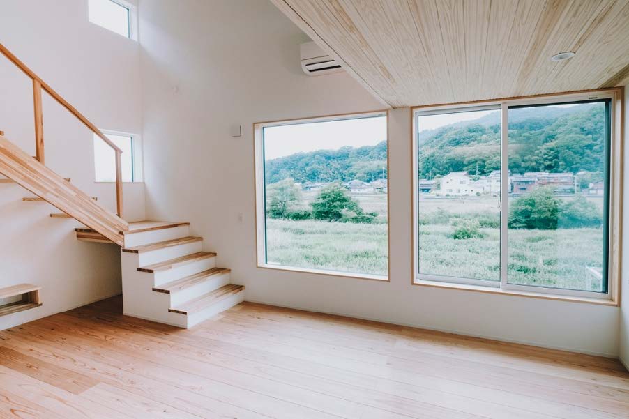 リビングの⼤きな窓から⾒えるのは、ゆたかな⾃然の⾵景。