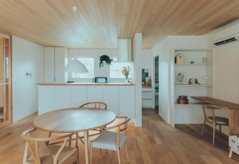 木のあたたかさに、北欧の雰囲気がほどよく重なる、落ち着いた空間が広がっています。