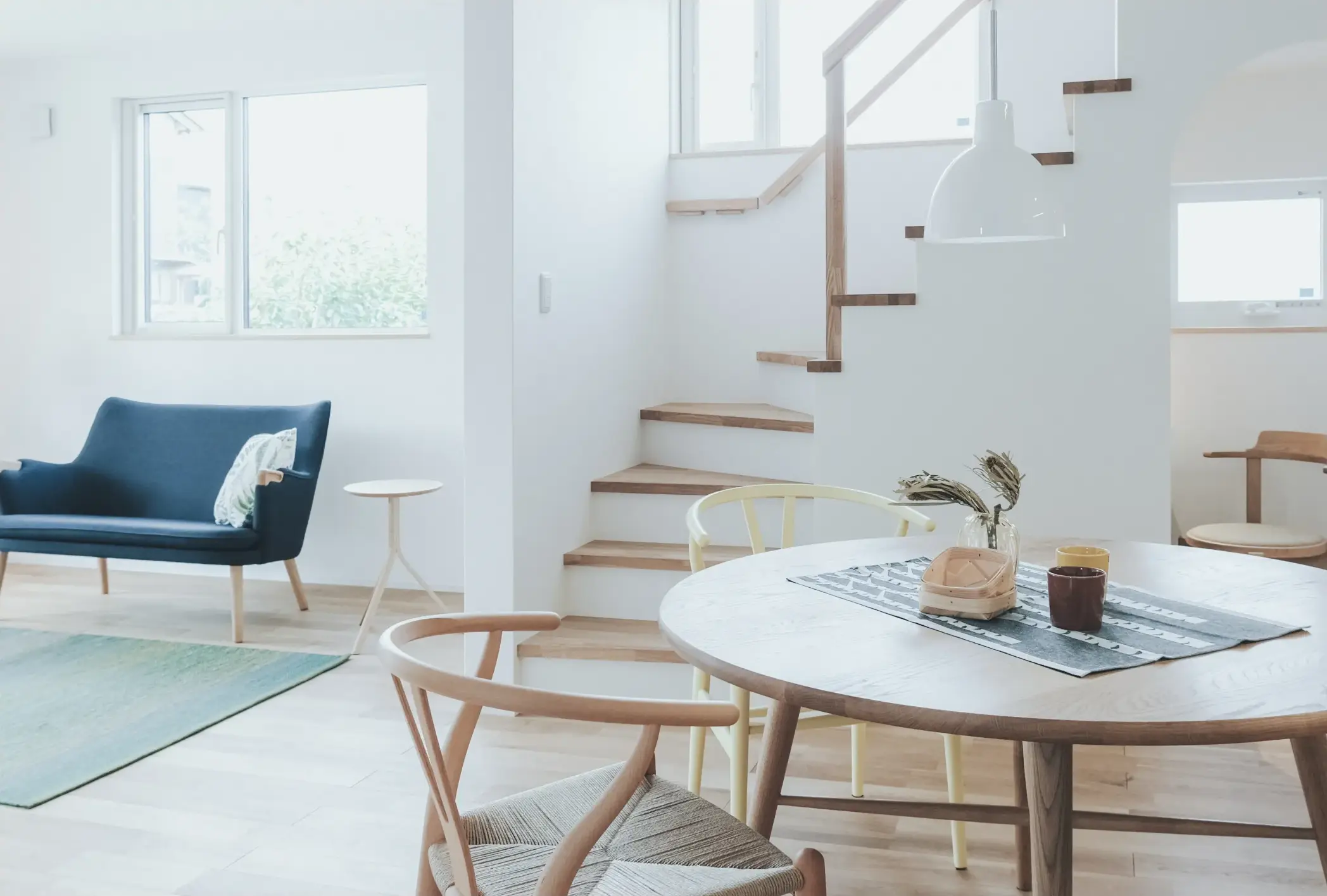 食べ盛りの子どもたちが集まるキッチンを、ダイニング・リビングとつながる住まいの中心に配置しました。南側の掃き出し窓の先にあるウッドデッキは、内と外を緩やかにつなぎます。犬が日向ぼっこをし、家族のくつろぎの時間が自然と外へ広がります。芝の庭はバーベキューや野球の素振り、夏にはプール遊びも思い切りできる場所。遠くへ出かけなくても、日常の中に楽しさがある。庭が家族だけのテーマパークになる住まいです。
