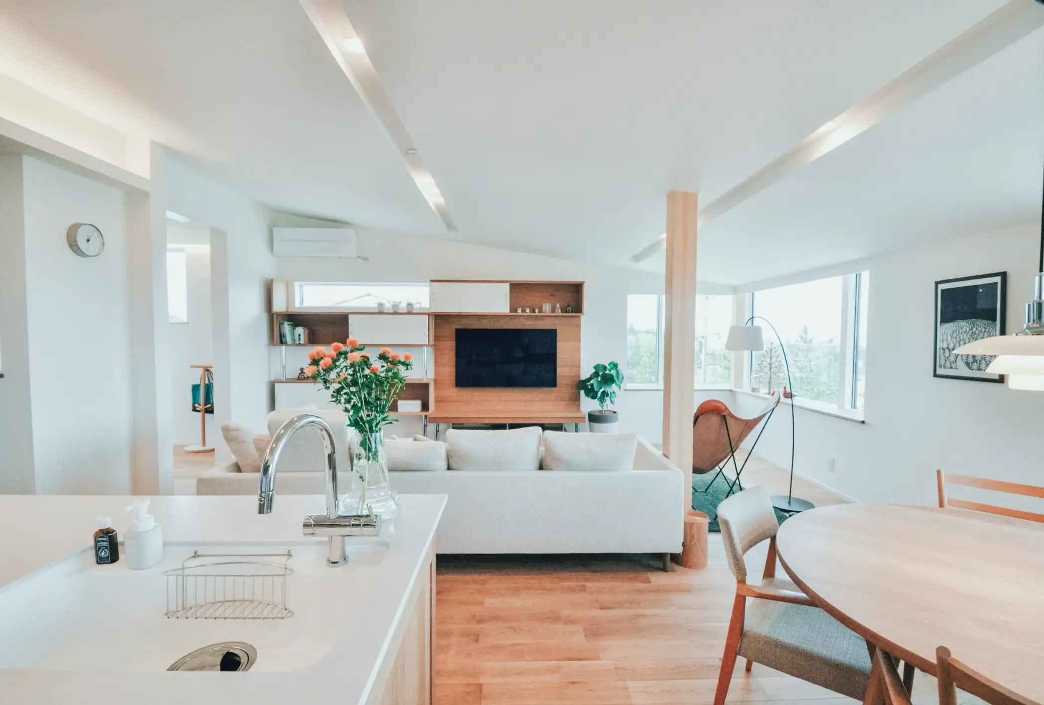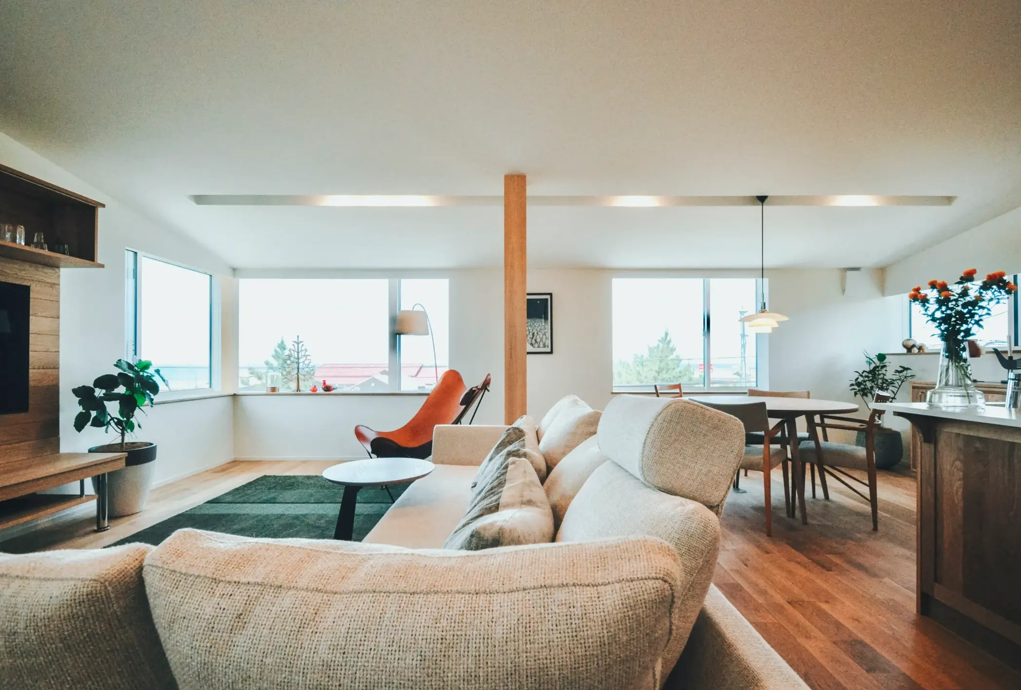 家族の気配がつながる暮らしを意識しました。1階には柔道に打ち込むお子様が練習できる柔道部屋をつくり、3階のリビングからでも頑張る息遣いを感じられる設計に。稽古に向き合う姿を自然と見守れ、「もう一本」という声が日常の中で交わされます。1階から3階の生活空間を縦につなぐことで、家族それぞれの時間を尊重しながらも、一体感のある住まいを実現。最上階から望む海の景色が、忙しい日々にそっと余白を与えてくれます